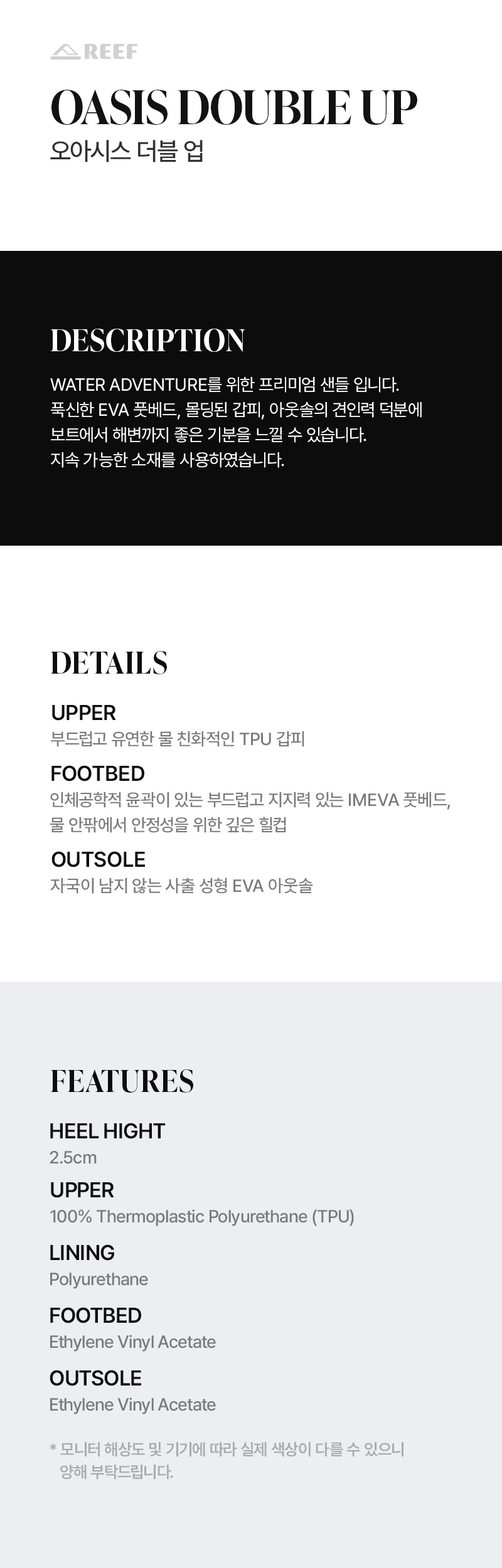 REEF BRAND SHOP 오아시스 더블 업 스타일컬러 : CJ6257-STONE 10%