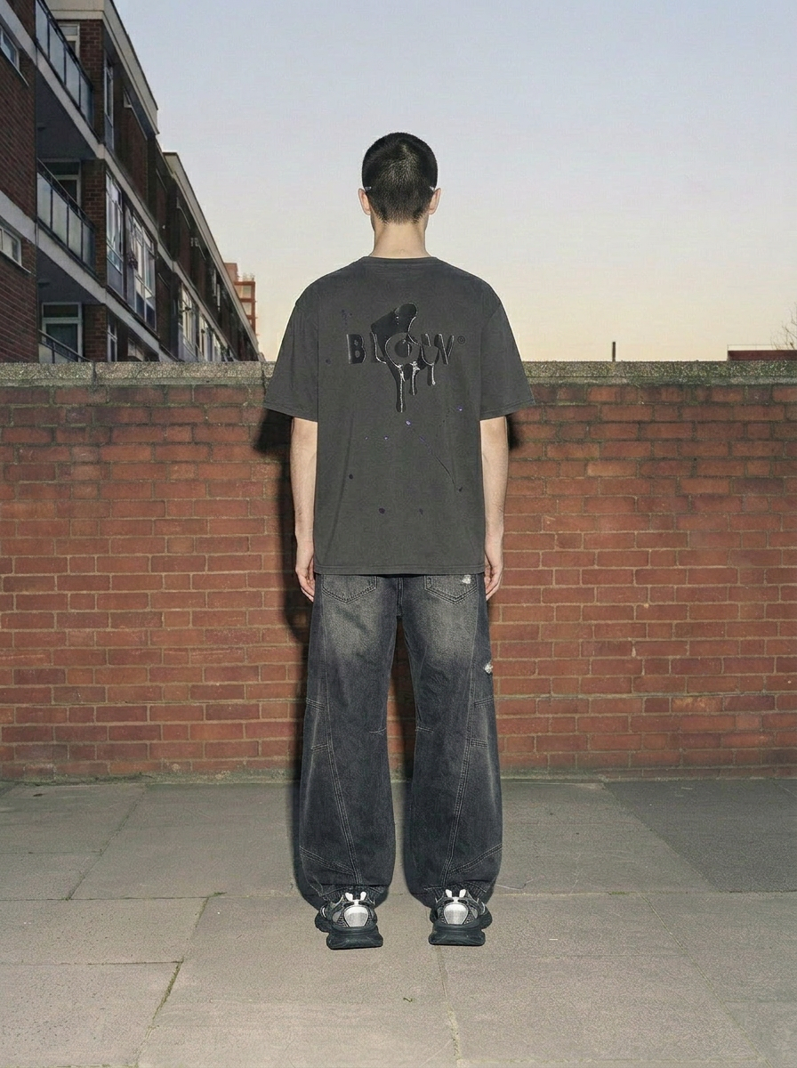 BLOW BRAND SHOP FLOWING LOGO HAND PAINTING T-SHIRT 스타일컬러 : 20260304-4-Charcoal 15%